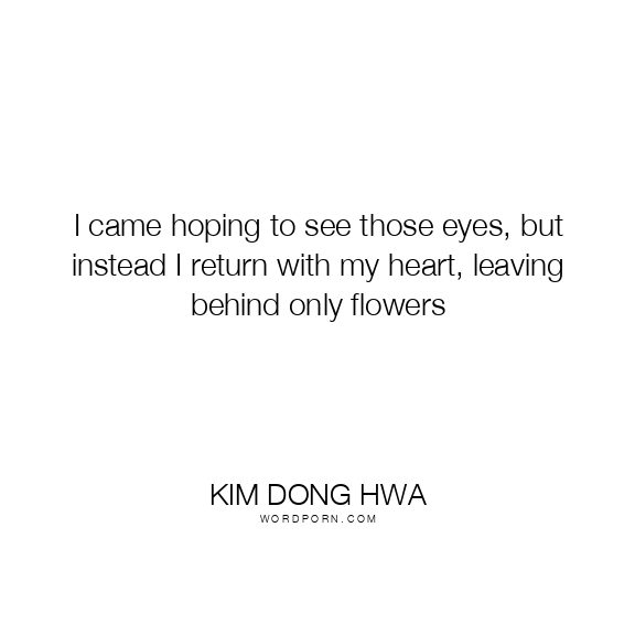 I came hoping to see those eyes, but instead I return with my heart, leaving behind only flowers