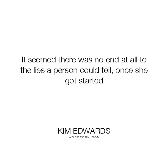 It seemed there was no end at all to the lies a person could tell, once she got started
