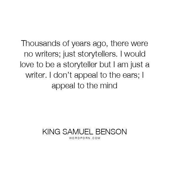 Thousands of years ago, there were no writers; just storytellers. I would love to be a storyteller but I am just a writer. I don’t appeal to the ears; I appeal to the mind