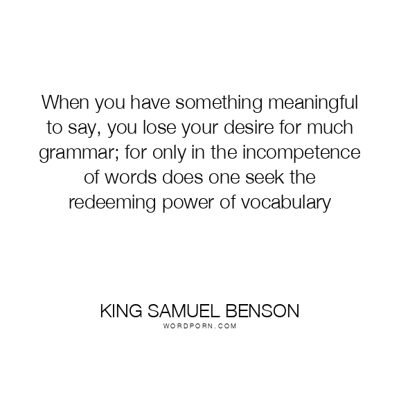 When you have something meaningful to say, you lose your desire for much grammar; for only in the incompetence of words does one seek the redeeming power of vocabulary