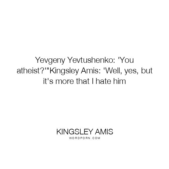 Yevgeny Yevtushenko: 'You atheist?'"Kingsley Amis: 'Well, yes, but it's more that I hate him