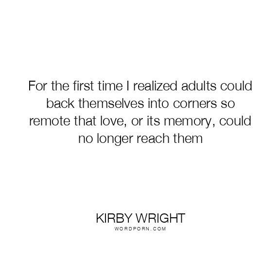 Copy Image For the first time I realized adults could back themselves into corners so remote that love, or its memory, could no longer reach them Moms Typewriter A A SAVE THIS IMAGE