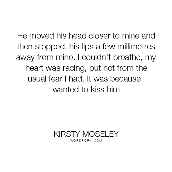 Kirsty Moseley quote. He moved his head closer to mine and then stopped, his lips a few millimetres away from mine. I couldn't breathe, my heart was racing, but not from the usual fear I had. It was because I wanted to kiss him