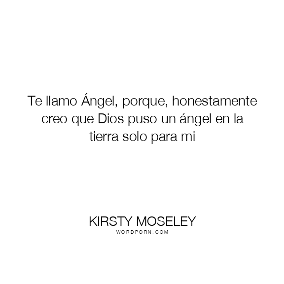 Kirsty Moseley quote. Te llamo Ángel, porque, honestamente creo que Dios puso un ángel en la tierra solo para mi