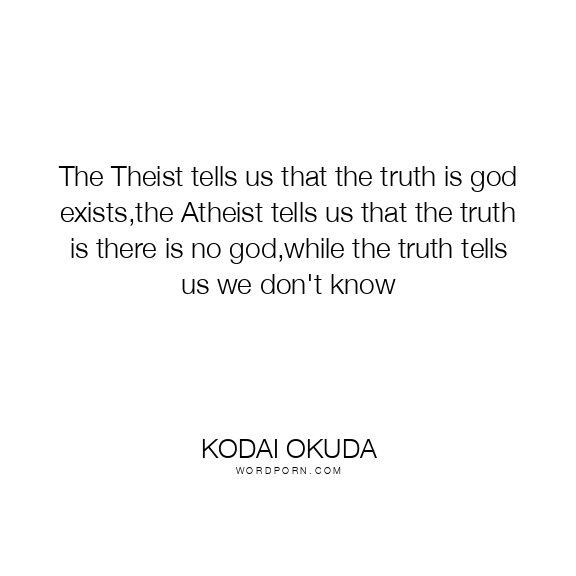 Copy Image The Theist tells us that the truth is god exists,the Atheist tells us that the truth is there is no god,while the truth tells us we don't know Moms Typewriter A A SAVE THIS IMAGE