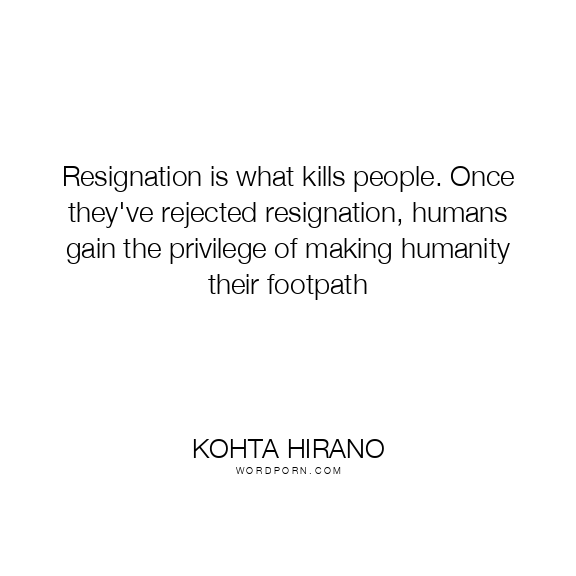 Resignation is what kills people. Once they've rejected resignation, humans gain the privilege of making humanity their footpath