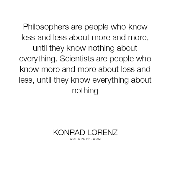 Philosophers are people who know less and less about more and more, until they know nothing about everything. Scientists are people who know more and more about less and less, until they know everything about nothing