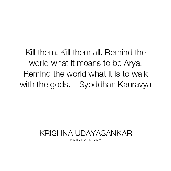 Kill them. Kill them all. Remind the world what it means to be Arya. Remind the world what it is to walk with the gods. – Syoddhan Kauravya