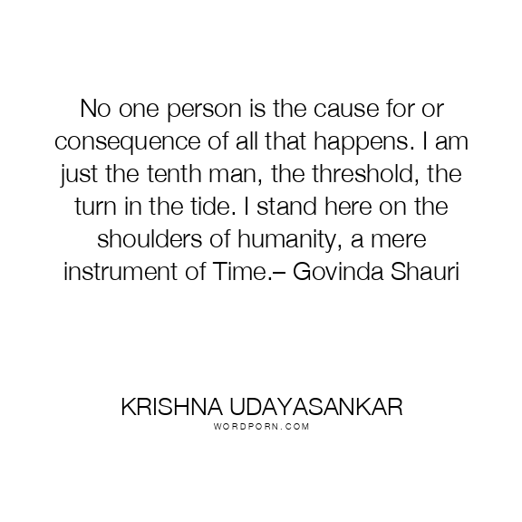 No one person is the cause for or consequence of all that happens. I am just the tenth man, the threshold, the turn in the tide. I stand here on the shoulders of humanity, a mere instrument of Time.– Govinda Shauri