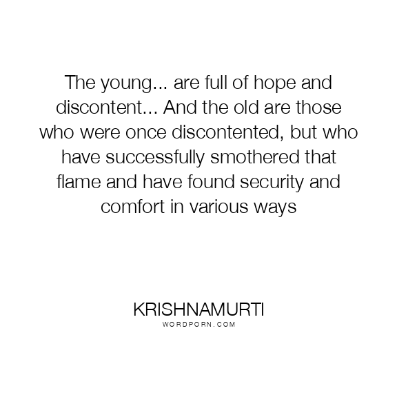 The young... are full of hope and discontent... And the old are those who were once discontented, but who have successfully smothered that flame and have found security and comfort in various ways