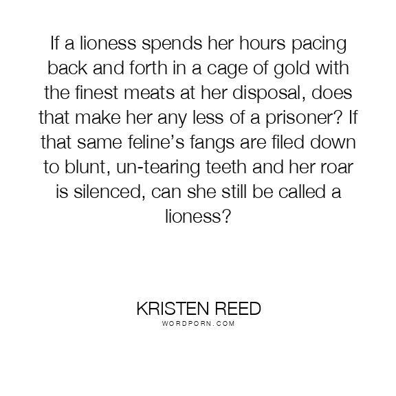 If a lioness spends her hours pacing back and forth in a cage of gold with the finest meats at her disposal, does that make her any less of a prisoner? If that same feline’s fangs are filed down to blunt, un-tearing teeth and her roar is silenced, can she still be called a lioness?