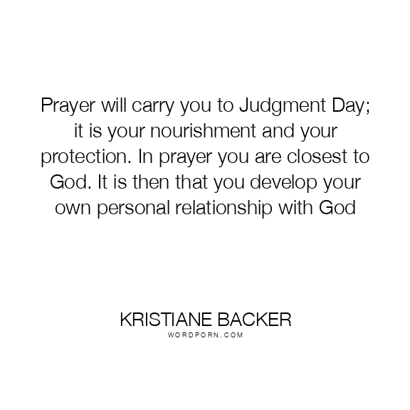 Prayer will carry you to Judgment Day; it is your nourishment and your protection. In prayer you are closest to God. It is then that you develop your own personal relationship with God