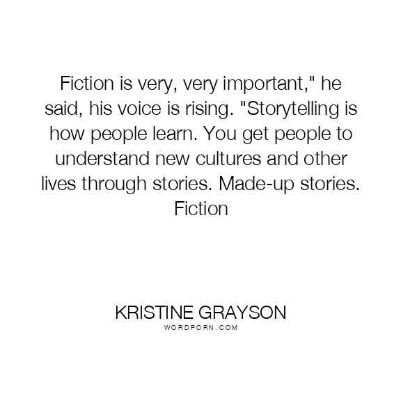 Fiction is very, very important," he said, his voice is rising. "Storytelling is how people learn. You get people to understand new cultures and other lives through stories. Made-up stories. Fiction