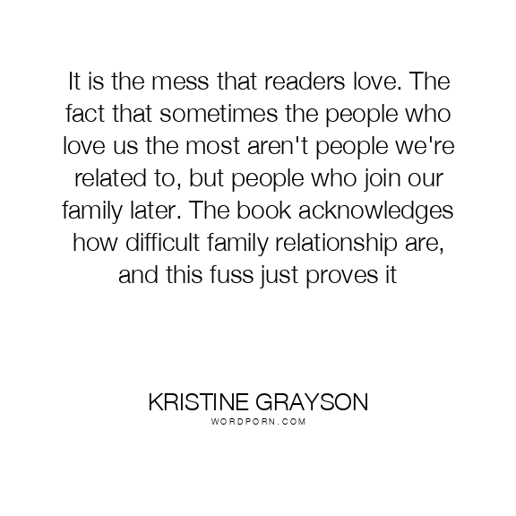 It is the mess that readers love. The fact that sometimes the people who love us the most aren't people we're related to, but people who join our family later. The book acknowledges how difficult family relationship are, and this fuss just proves it