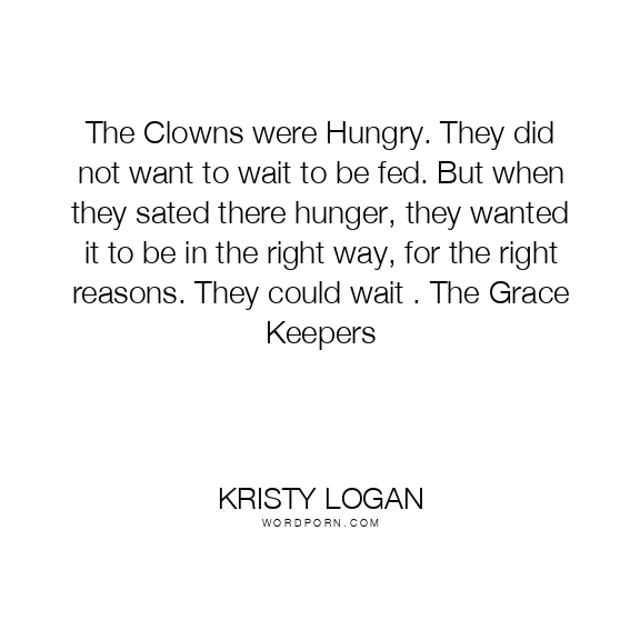 The Clowns were Hungry. They did not want to wait to be fed. But when they sated there hunger, they wanted it to be in the right way, for the right reasons. They could wait . The Grace Keepers