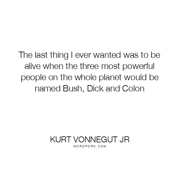 The last thing I ever wanted was to be alive when the three most powerful people on the whole planet would be named Bush, Dick and Colon