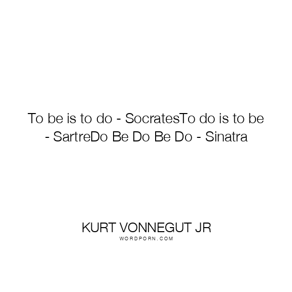 To be is to do - SocratesTo do is to be - SartreDo Be Do Be Do - Sinatra