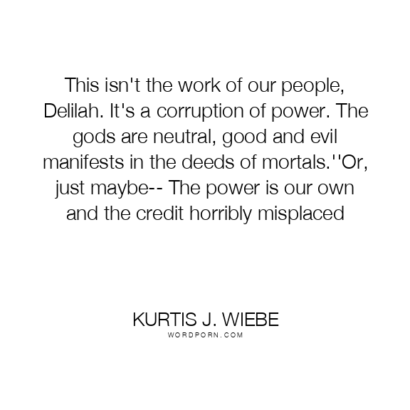 This isn't the work of our people, Delilah. It's a corruption of power. The gods are neutral, good and evil manifests in the deeds of mortals.''Or, just maybe-- The power is our own and the credit horribly misplaced