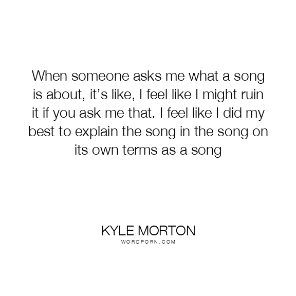 When someone asks me what a song is about, it’s like, I feel like I might ruin it if you ask me that. I feel like I did my best to explain the song in the song on its own terms as a song