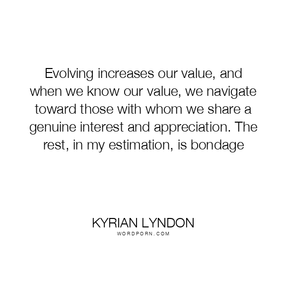 Evolving increases our value, and when we know our value, we navigate toward those with whom we share a genuine interest and appreciation. The rest, in my estimation, is bondage