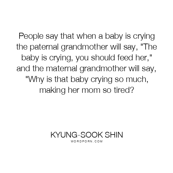People say that when a baby is crying the paternal grandmother will say, "The baby is crying, you should feed her," and the maternal grandmother will say, "Why is that baby crying so much, making her mom so tired?
