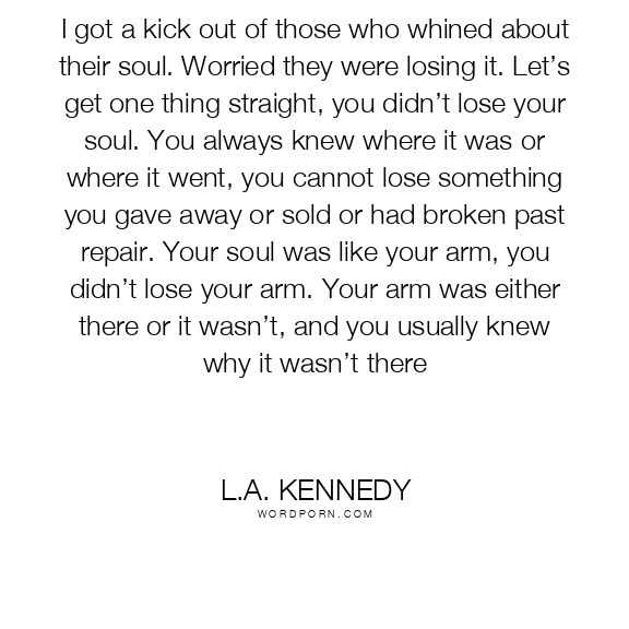 I got a kick out of those who whined about their soul. Worried they were losing it. Let’s get one thing straight, you didn’t lose your soul. You always knew where it was or where it went, you cannot lose something you gave away or sold or had broken past repair. Your soul was like your arm, you didn’t lose your arm. Your arm was either there or it wasn’t, and you usually knew why it wasn’t there