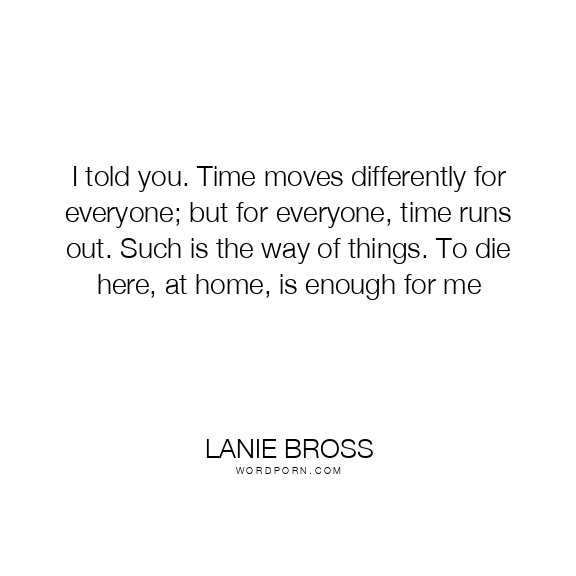 Copy Image I told you. Time moves differently for everyone; but for everyone, time runs out. Such is the way of things. To die here, at home, is enough for me Moms Typewriter A A SAVE THIS IMAGE