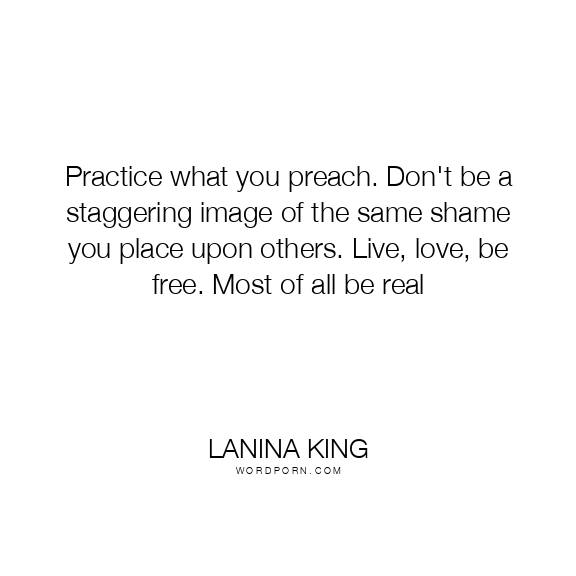 Practice what you preach. Don't be a staggering image of the same shame you place upon others. Live, love, be free. Most of all be real