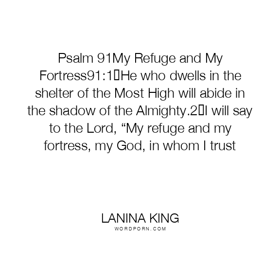 Psalm 91My Refuge and My Fortress91:1 He who dwells in the shelter of the Most High will abide in the shadow of the Almighty.2 I will say to the Lord, “My refuge and my fortress, my God, in whom I trust