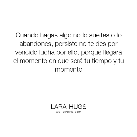 Cuando hagas algo no lo sueltes o lo abandones, persiste no te des por vencido lucha por ello, porque llegará el momento en que será tu tiempo y tu momento