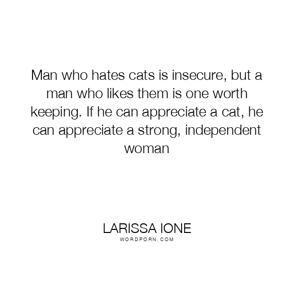 Man who hates cats is insecure, but a man who likes them is one worth keeping. If he can appreciate a cat, he can appreciate a strong, independent woman