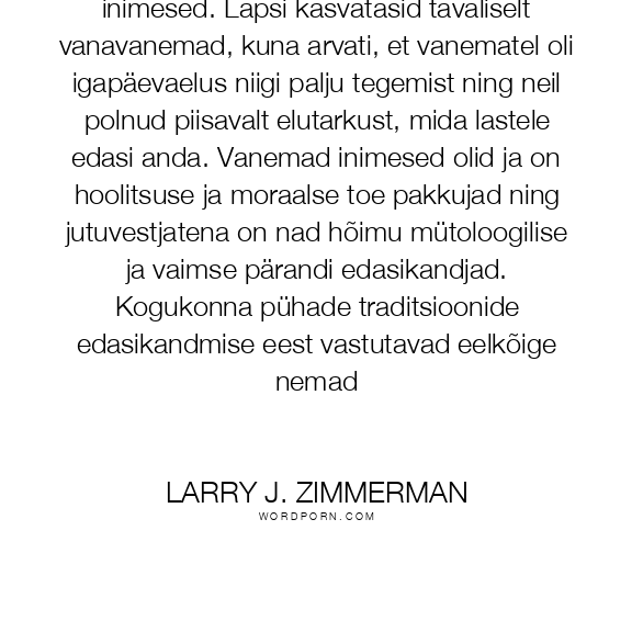 Eriti olulist rolli mängisid vanemad inimesed. Lapsi kasvatasid tavaliselt vanavanemad, kuna arvati, et vanematel oli igapäevaelus niigi palju tegemist ning neil polnud piisavalt elutarkust, mida lastele edasi anda. Vanemad inimesed olid ja on hoolitsuse ja moraalse toe pakkujad ning jutuvestjatena on nad hõimu mütoloogilise ja vaimse pärandi edasikandjad. Kogukonna pühade traditsioonide edasikandmise eest vastutavad eelkõige nemad