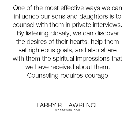 One of the most effective ways we can influence our sons and daughters is to counsel with them in private interviews. By listening closely, we can discover the desires of their hearts, help them set righteous goals, and also share with them the spiritual impressions that we have received about them. Counseling requires courage