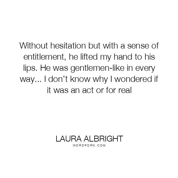 Without hesitation but with a sense of entitlement, he lifted my hand to his lips. He was gentlemen-like in every way... I don’t know why I wondered if it was an act or for real