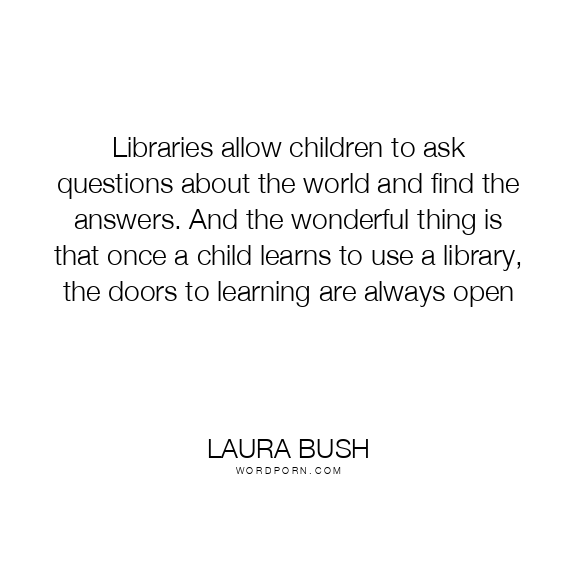 Libraries allow children to ask questions about the world and find the answers. And the wonderful thing is that once a child learns to use a library, the doors to learning are always open
