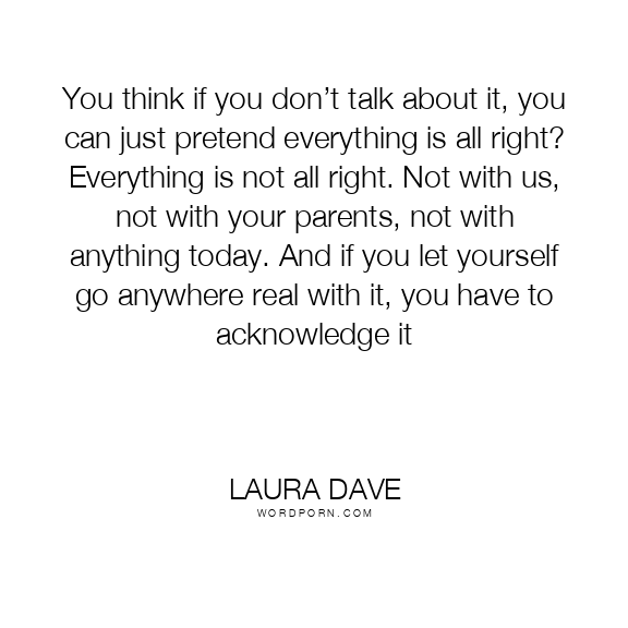 You think if you don’t talk about it, you can just pretend everything is all right? Everything is not all right. Not with us, not with your parents, not with anything today. And if you let yourself go anywhere real with it, you have to acknowledge it