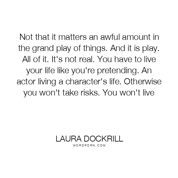 Not that it matters an awful amount in the grand play of things. And it is play. All of it. It's not real. You have to live your life like you're pretending. An actor living a character's life. Otherwise you won't take risks. You won't live