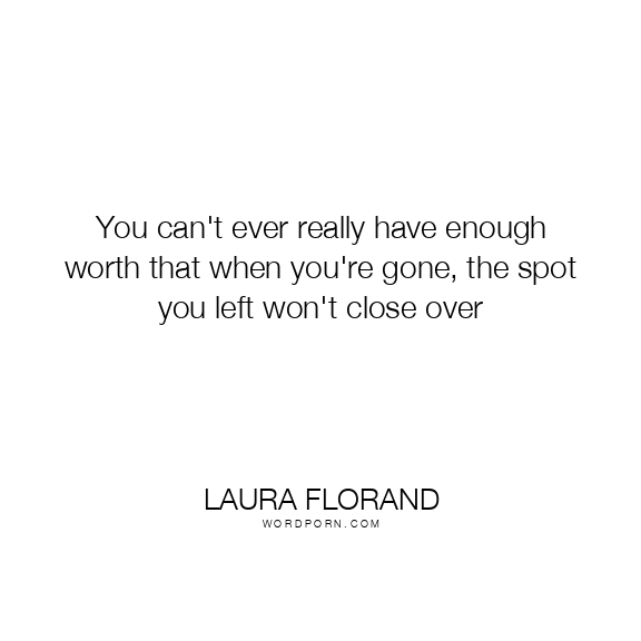 You can't ever really have enough worth that when you're gone, the spot you left won't close over