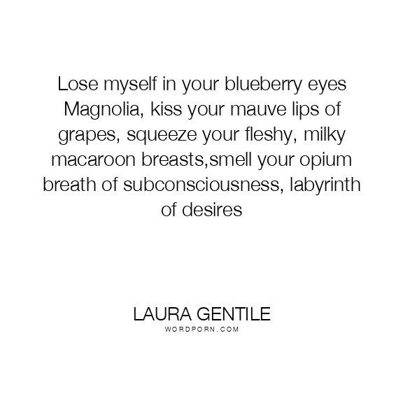 Lose myself in your blueberry eyes Magnolia, kiss your mauve lips of grapes, squeeze your fleshy, milky macaroon breasts,smell your opium breath of subconsciousness, labyrinth of desires