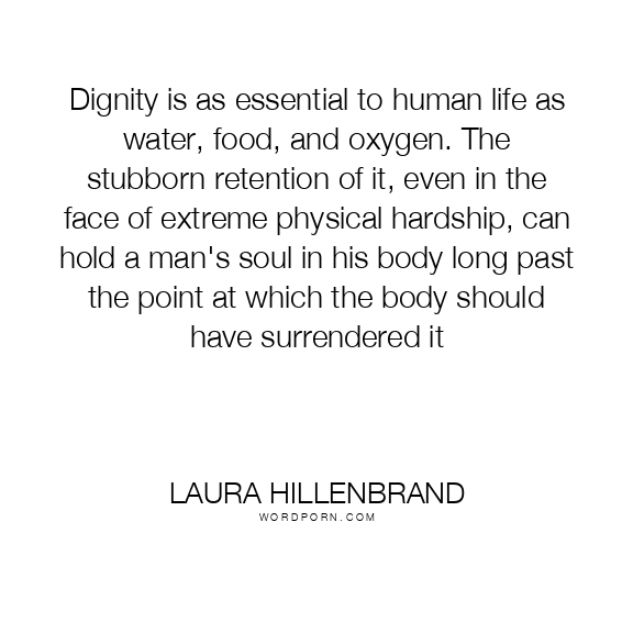 Dignity is as essential to human life as water, food, and oxygen. The stubborn retention of it, even in the face of extreme physical hardship, can hold a man's soul in his body long past the point at which the body should have surrendered it