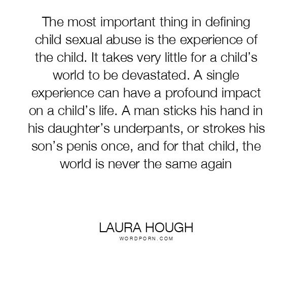 The most important thing in defining child sexual abuse is the experience of the child. It takes very little for a child’s world to be devastated. A single experience can have a profound impact on a child’s life. A man sticks his hand in his daughter’s underpants, or strokes his son’s penis once, and for that child, the world is never the same again