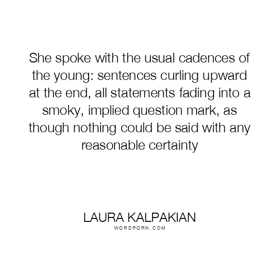 She spoke with the usual cadences of the young: sentences curling upward at the end, all statements fading into a smoky, implied question mark, as though nothing could be said with any reasonable certainty