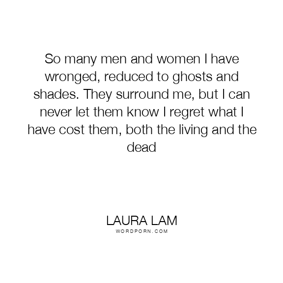 So many men and women I have wronged, reduced to ghosts and shades. They surround me, but I can never let them know I regret what I have cost them, both the living and the dead