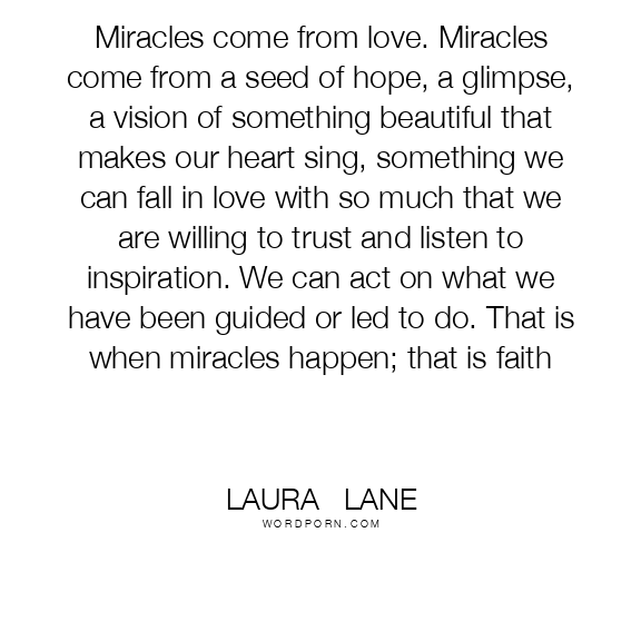 Miracles come from love. Miracles come from a seed of hope, a glimpse, a vision of something beautiful that makes our heart sing, something we can fall in love with so much that we are willing to trust and listen to inspiration. We can act on what we have been guided or led to do. That is when miracles happen; that is faith