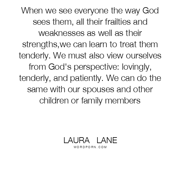 When we see everyone the way God sees them, all their frailties and weaknesses as well as their strengths,we can learn to treat them tenderly. We must also view ourselves from God's perspective: lovingly, tenderly, and patiently. We can do the same with our spouses and other children or family members