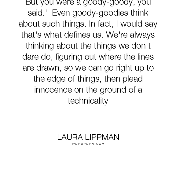 But you were a goody-goody, you said.' 'Even goody-goodies think about such things. In fact, I would say that's what defines us. We're always thinking about the things we don't dare do, figuring out where the lines are drawn, so we can go right up to the edge of things, then plead innocence on the ground of a technicality