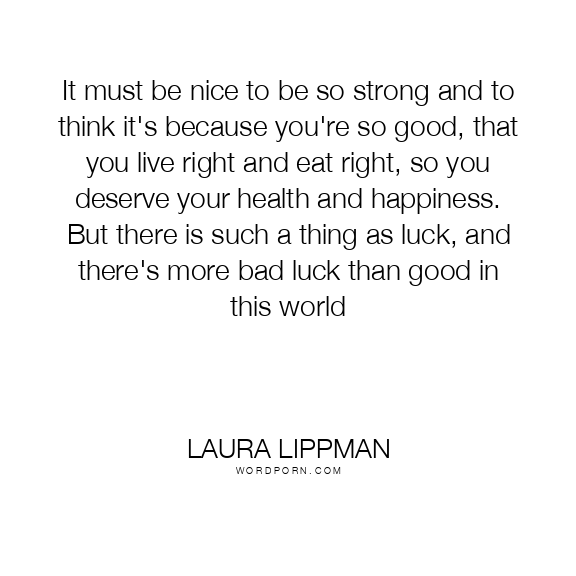 It must be nice to be so strong and to think it's because you're so good, that you live right and eat right, so you deserve your health and happiness. But there is such a thing as luck, and there's more bad luck than good in this world