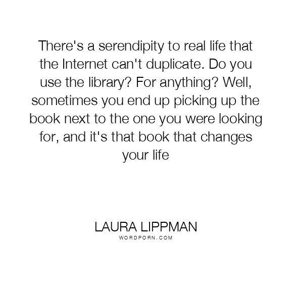 There's a serendipity to real life that the Internet can't duplicate. Do you use the library? For anything? Well, sometimes you end up picking up the book next to the one you were looking for, and it's that book that changes your life