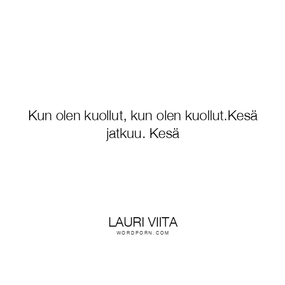 Kun olen kuollut, kun olen kuollut.Kesä jatkuu. Kesä