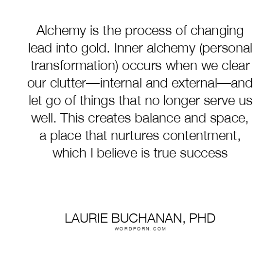 Alchemy is the process of changing lead into gold. Inner alchemy (personal transformation) occurs when we clear our clutter—internal and external—and let go of things that no longer serve us well. This creates balance and space, a place that nurtures contentment, which I believe is true success